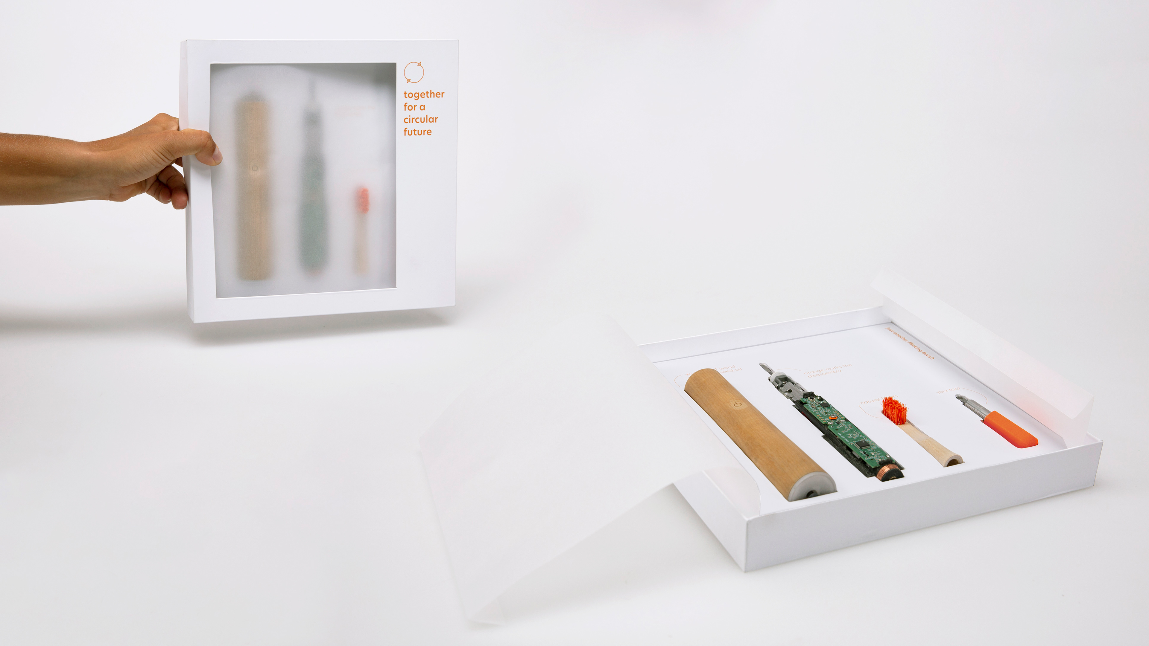 "just another f#cking brush" is a concept for a repairable and circular toothbrush. concept rethinks the toothbrush in terms of its sustainability. it focuses on empowering users to repair their toothbrushes, reducing plastic waste, and implementing a circular economy model that considers both user needs and environmental impact. the brush is not just a product - it's a well thought-out service.